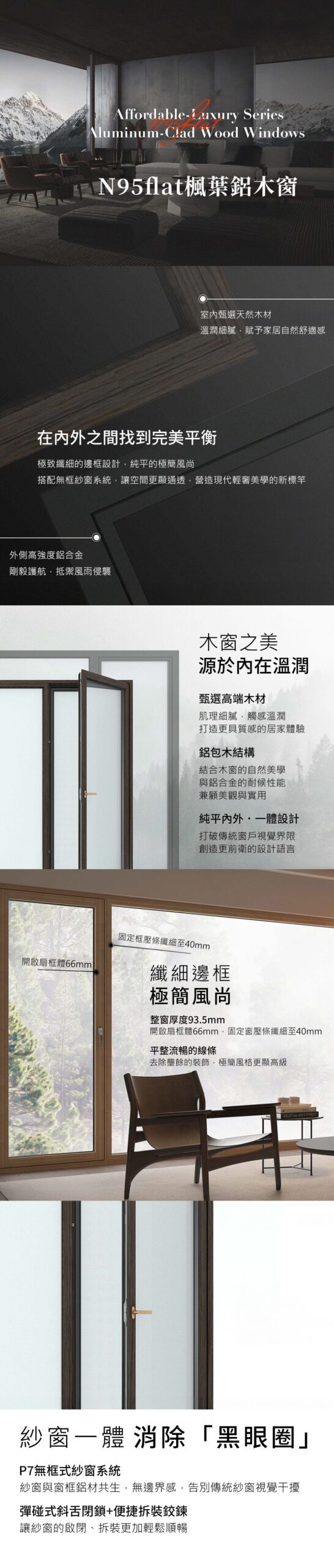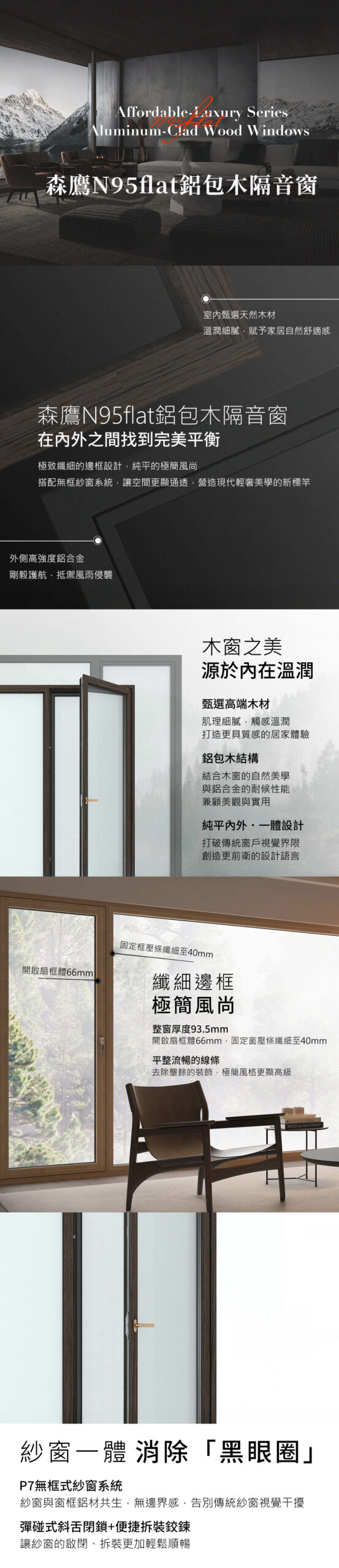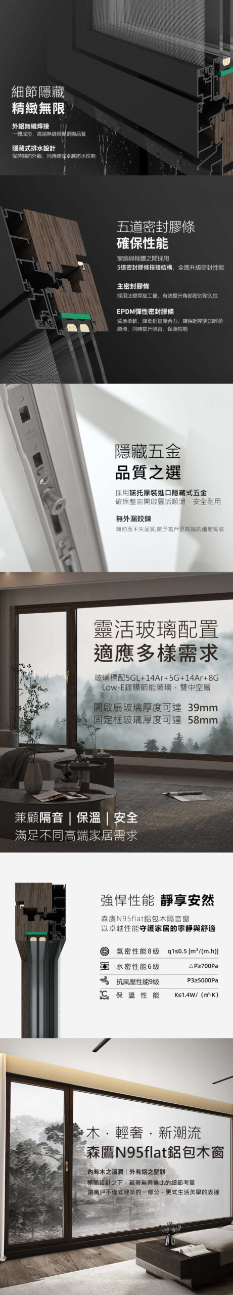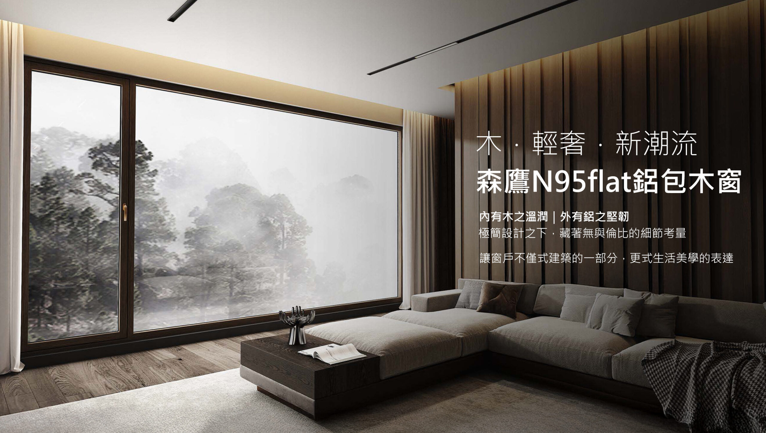 森鹰新清奢系列鋁包木窗N95flat 頂級隔音窗 藍鯨隔音門窗台灣獨家代理