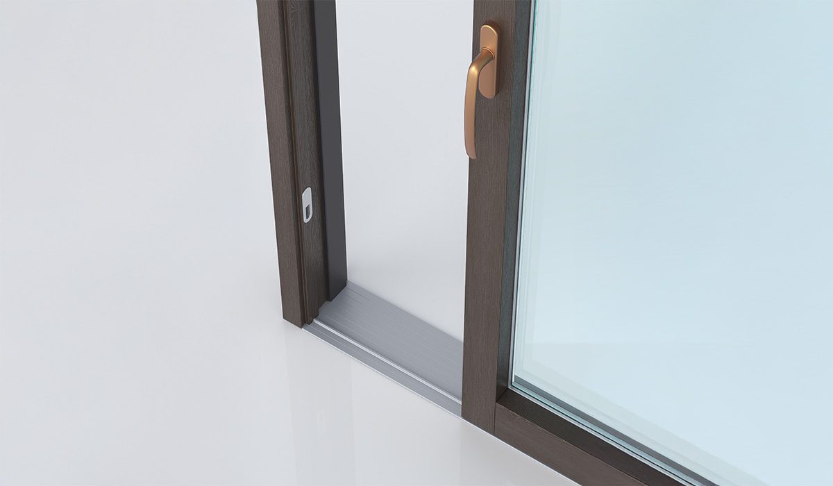 搭配下沉式隱藏鎖座,實現室內外地坪完美銜接,同時加高下滑軌與防潑濺構造,在維持美觀的同時,兼顧排水效率與居家安全性。