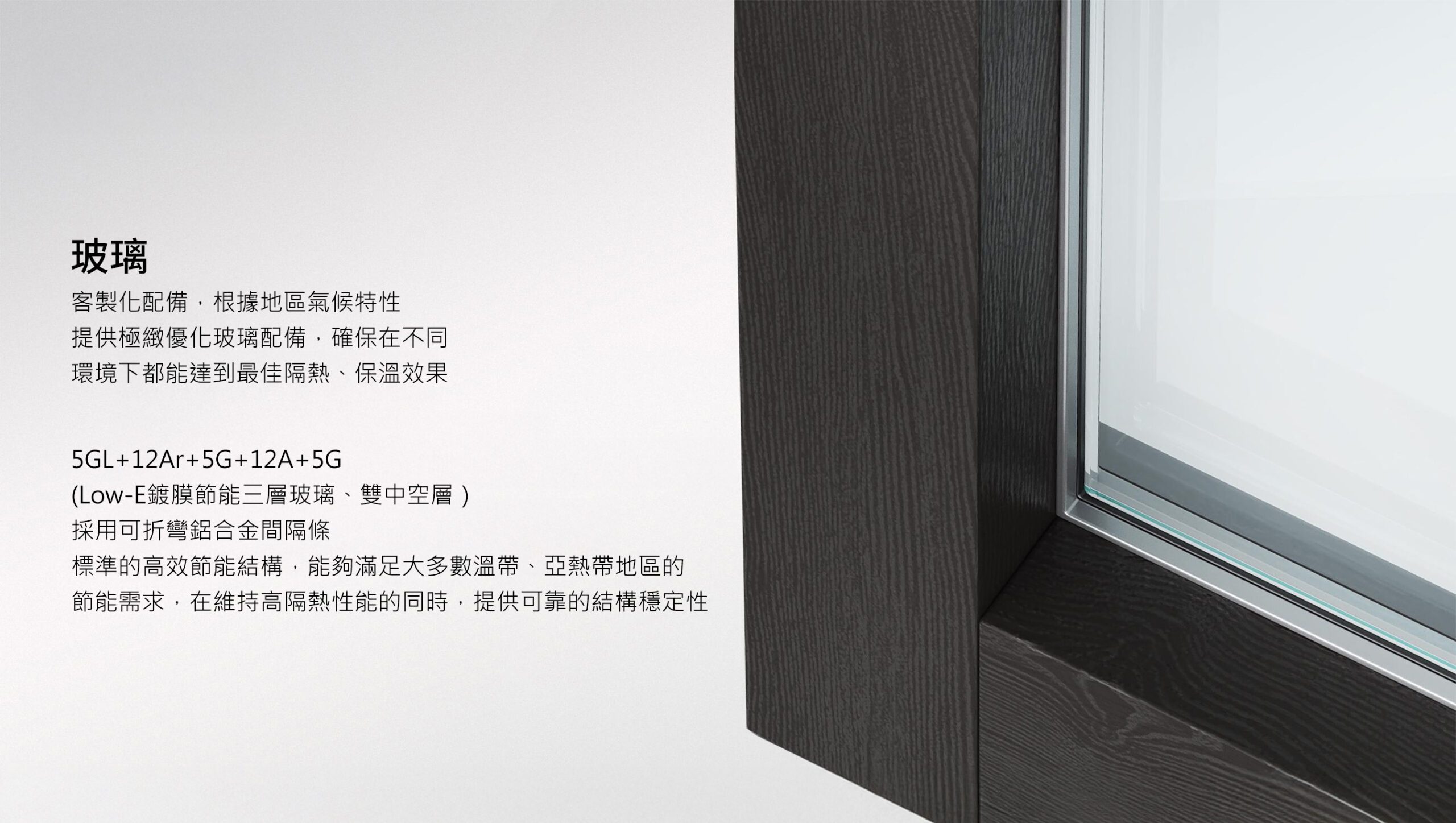 複層中空玻璃特別選用義大利暖邊條,搭配乾燥棒,有效防止邊緣熱傳導,確保在溫差環境下玻璃依然清透、不產生結露。