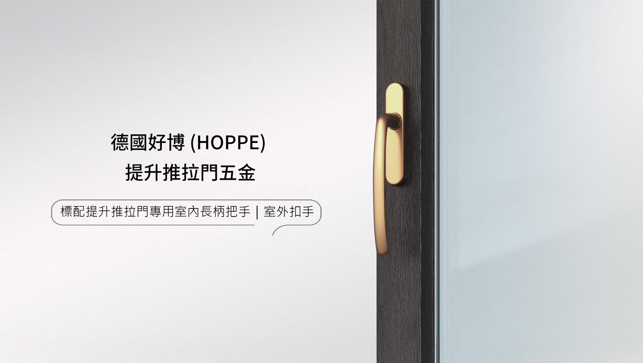 嚴選德國原裝進口「提升推拉專用五金系統」,展現卓越的力學設計。
