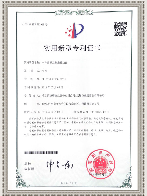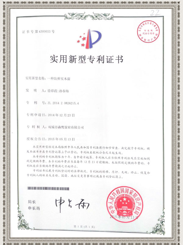 森鷹隔音窗截至目前,森鷹已累積申報接近 400 項國家專利,現持有 27 項發明專利,是業界在累計專利申請量及發明專利授權數方面領先的木窗企業。