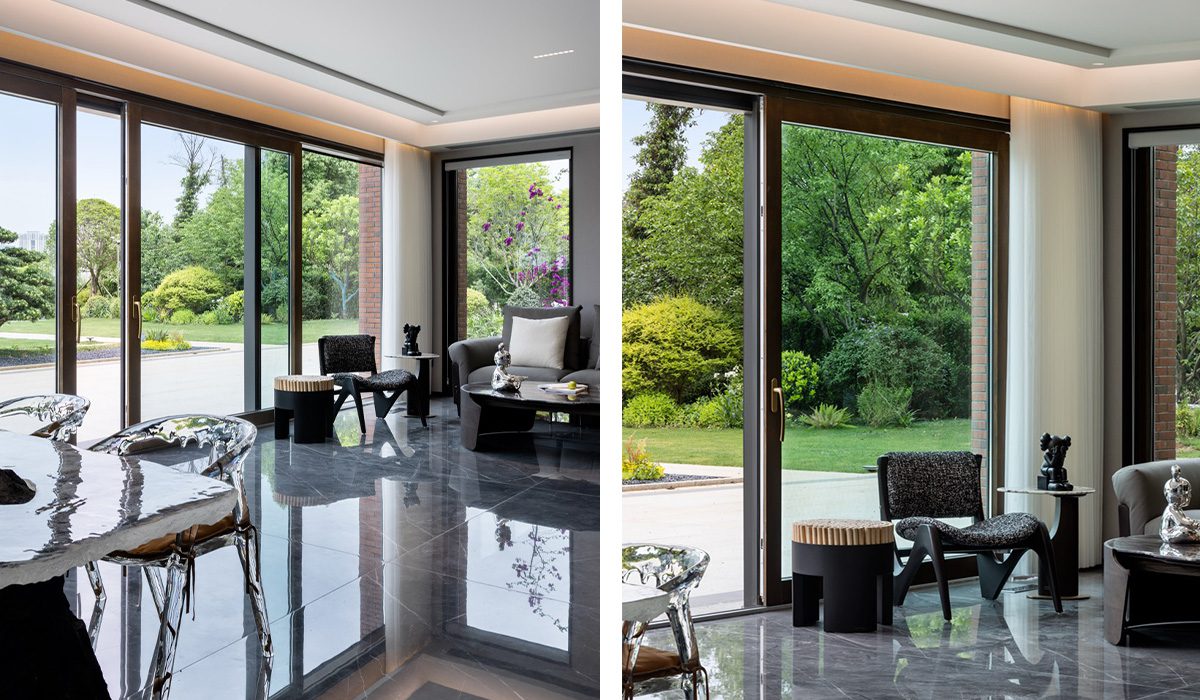 在追求極致簡約的視覺質感下,面寬最寬可達 6 公尺,打破空間界限,讓窗景如畫作般延展開來