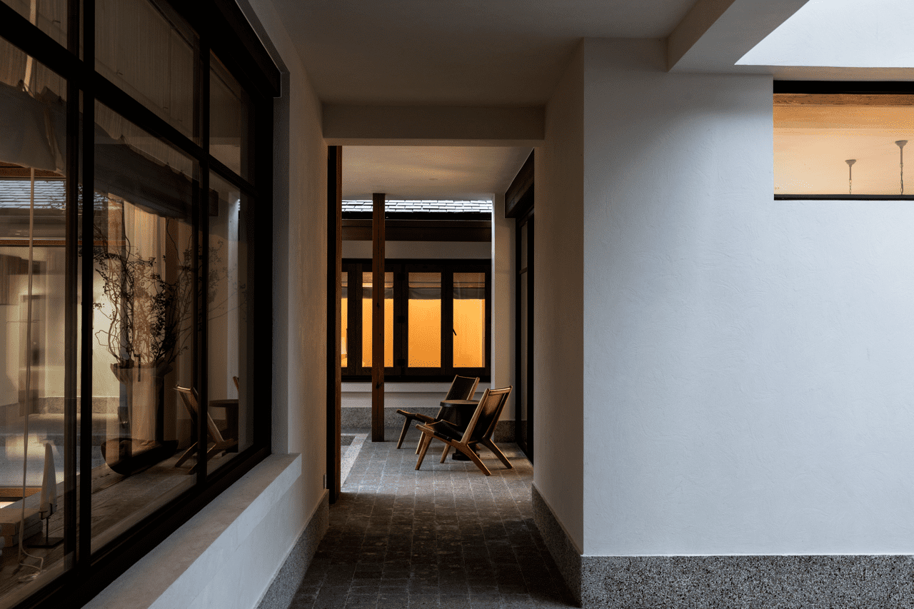 在這次舊屋改造中,設計團隊面臨的核心難題是如何巧妙連接兩處原本分隔的院落,使其既能滿足四代同堂的居住需求,同時又能保有彼此獨立、安然共處的生活尺度。
