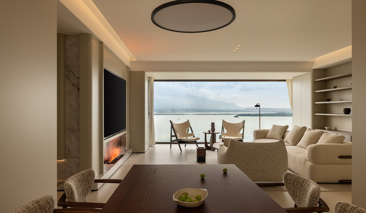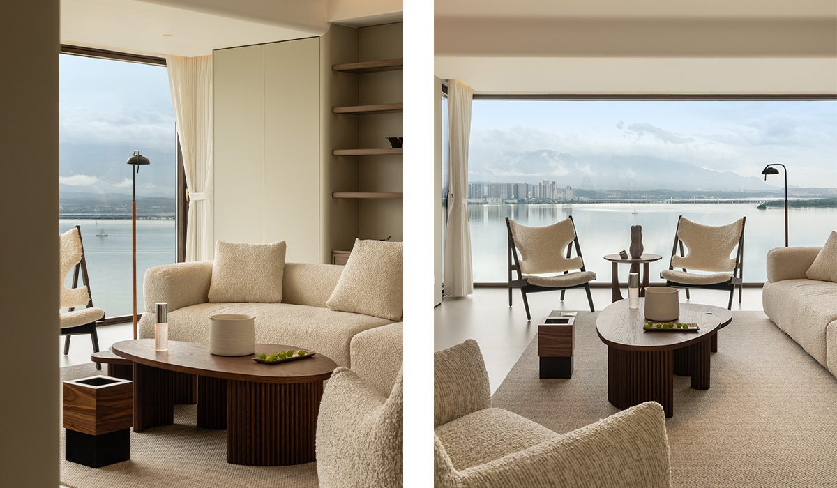 本案最大的亮點在於其無遮擋的地理優勢。為了不浪費這一眼望去的治癒湖景,設計師決定以窗戶為核心延伸設計。