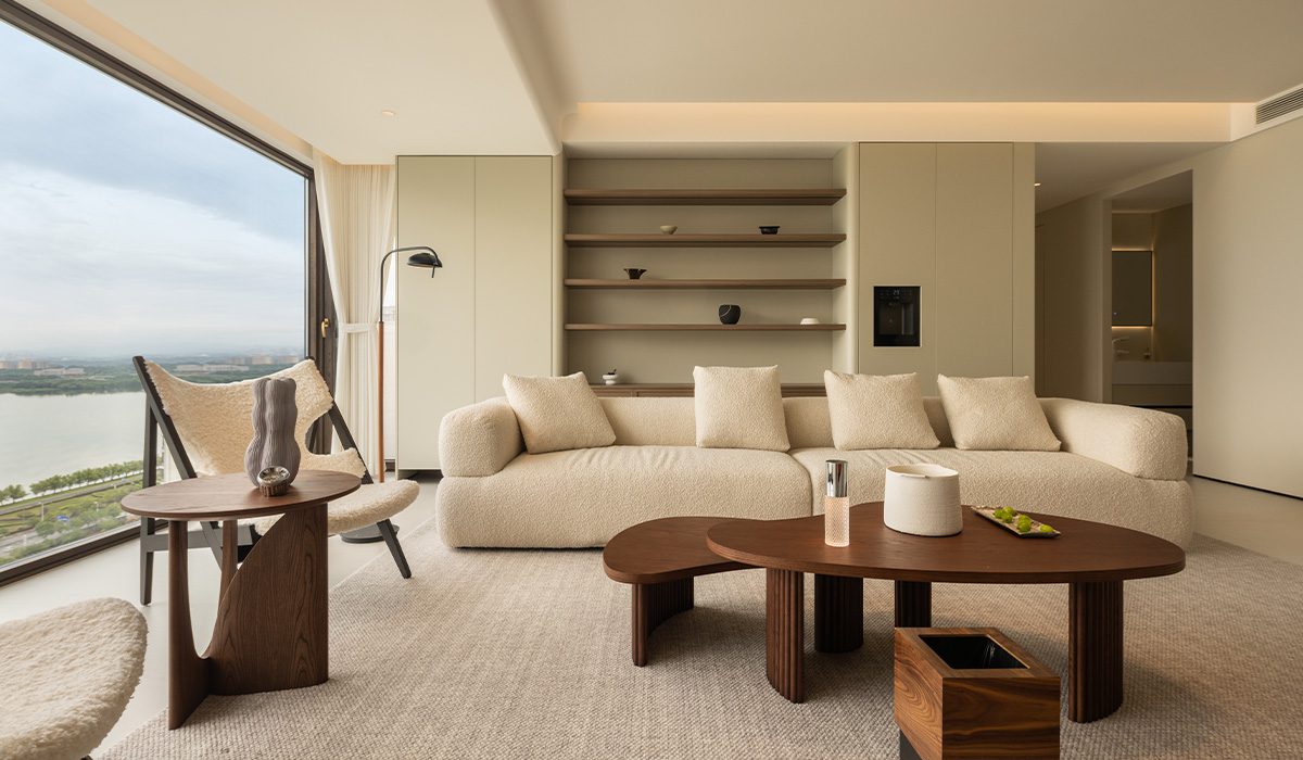 在室內設計中,「窗戶」往往被視為建築的靈魂。對於這間坐落於江西九江湖心的住宅而言,窗戶不僅是通風換氣的工具,更是連結室內溫潤木質與室外浩瀚湖景的藝術畫布。